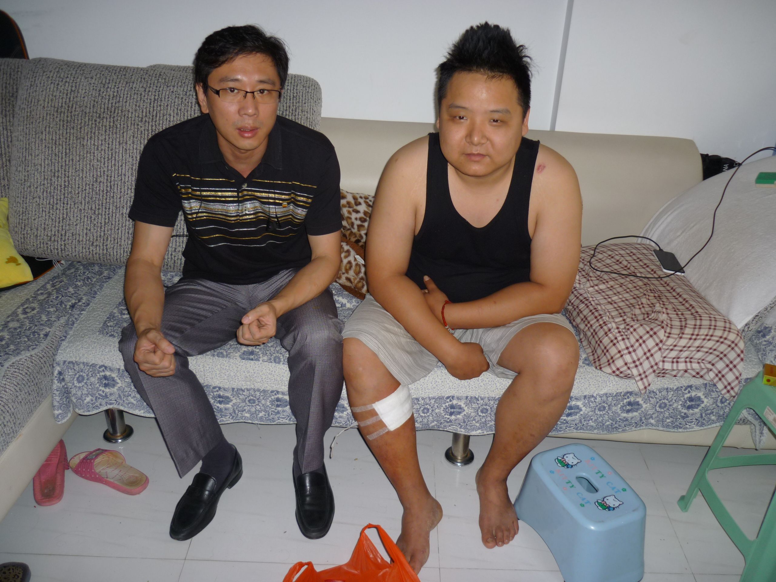 上塘分部倉管員盧杰393219,4月14日早上8:30分左右,倉庫安排其送錯分件到民治分部,在返回分部途中經(jīng)過梅龍路皇家一號路段,一部轎車突然從一條岔路拐進梅龍路,在這情況下盧杰的電動車無法及時避讓,導(dǎo)致轎車和電單車相撞,盧杰和電單車當(dāng)場被小車撞到在地,身體腳部和手部嚴(yán)重擦傷,行動受到影響。經(jīng)醫(yī)院醫(yī)生診斷盧杰右肩部、前臂、右腿腫脹和軟組織損傷和筋傷。現(xiàn)在還在治療中,需申報工傷或意外險。